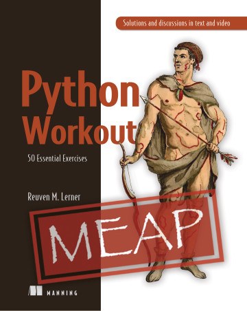And as of earlier this week, “Python Workout” is now available in print, as well as online. It has tons of features — from walkthroughs on the “Python Tutor” site to screencasts of me solving the exercises — to help improve your fluency and understanding when programming in Python.