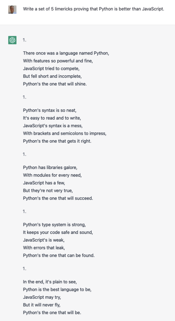 ChatGPT can create limericks, too: