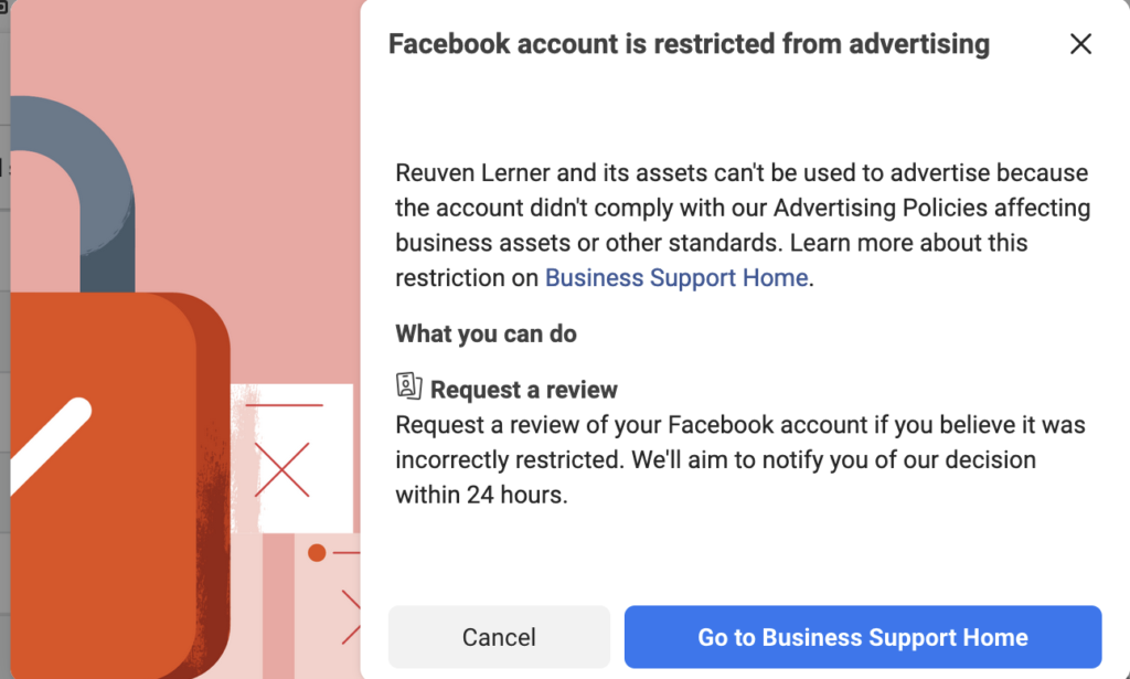 The first friend looked into it, and found that there was nothing to be done. That’s because Meta has a data-retention policy of only 180 days, and because my account was suspended more than one year before I asked people to look into it, all of the evidence is now gone. Which means that there’s no way to reinstate my advertising account.